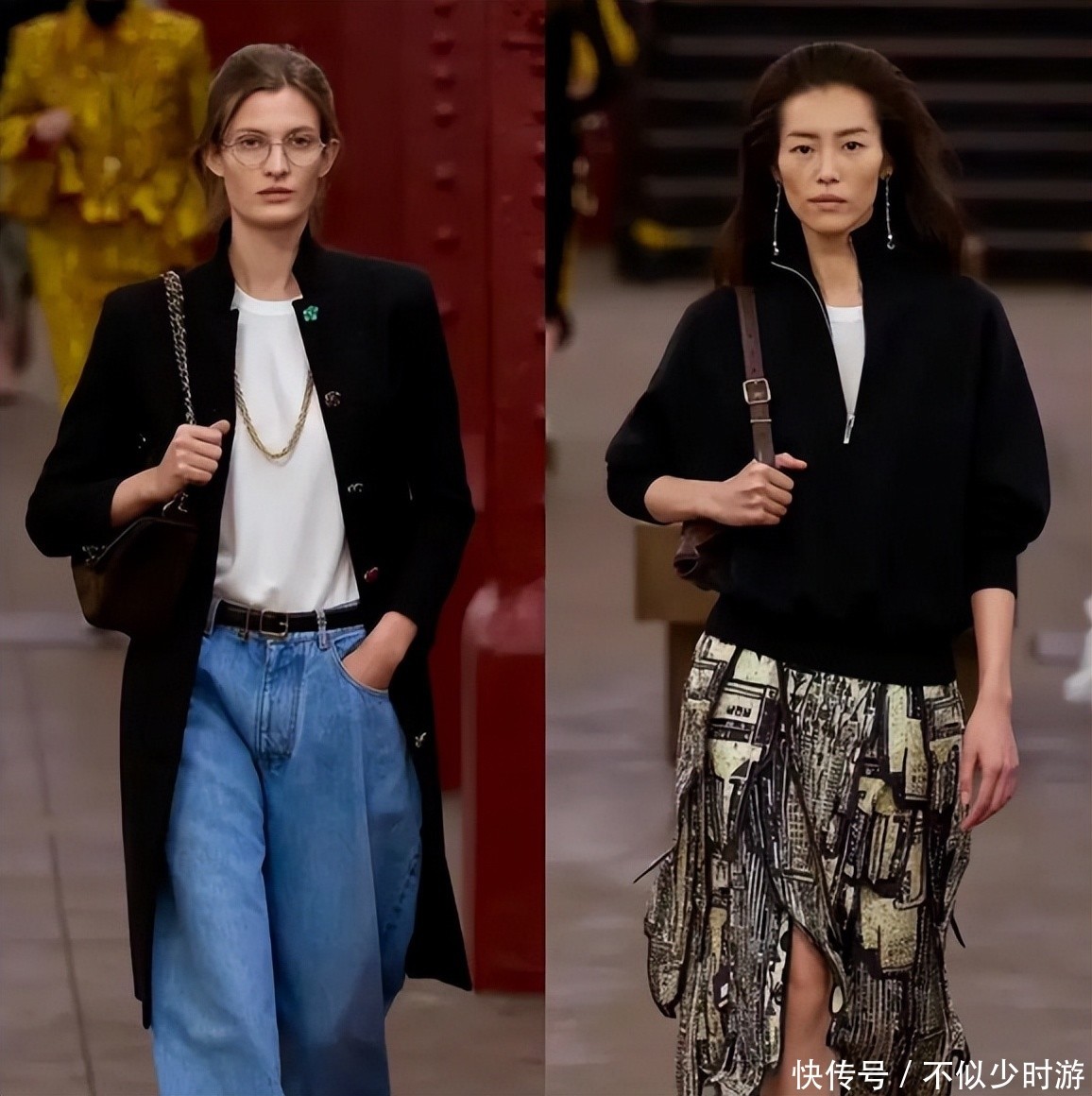 更别说时代变了,以前香奈儿出长裤、宽松毛衣,打破女性着装束缚,是真先锋;现在连航空公司都不让女职员穿裙装高跟鞋了,香奈儿秀场模特还清一色穿高跟鞋,有的牛仔裤版型差到裆部隆起,这根本没懂现在女性要的舒适。